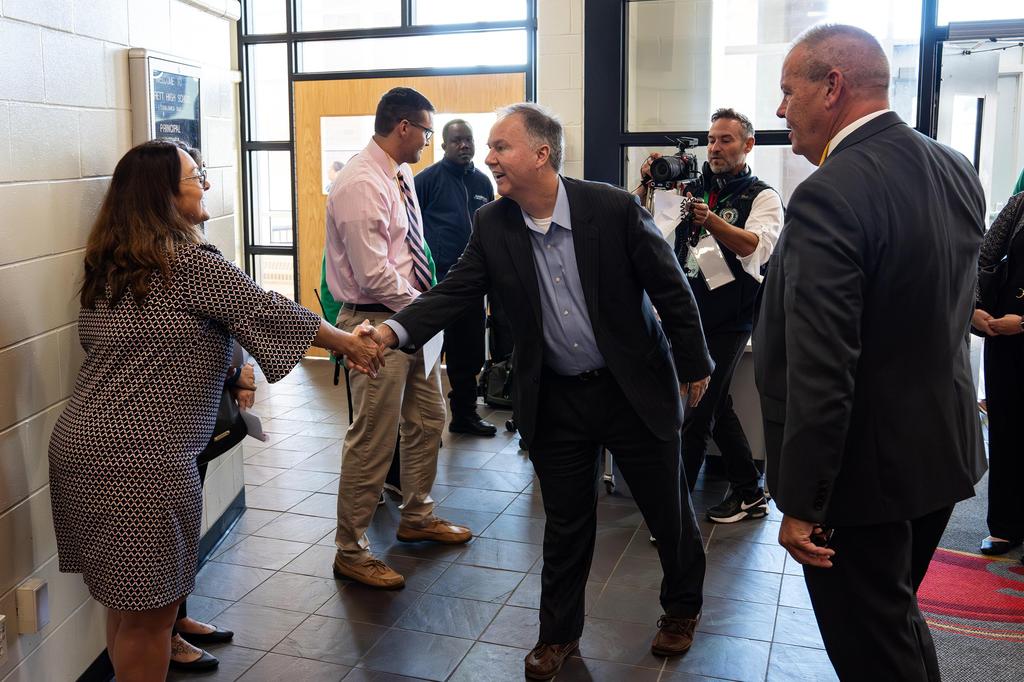 Jason Snyder, the Commonwealth’s Secretary of the Executive Office of Technology Services and Security, who visited Everett High School (EHS) on Thursday, October 9, 2025, to interact with our awesome STEM students and teachers and learn about the significant technology improvements the EPS has made under the leadership of Superintendent William D. Hart. PHOTOS BY JUSTIN HAHN.