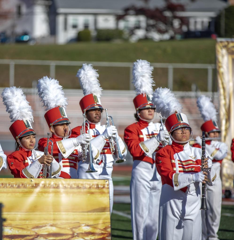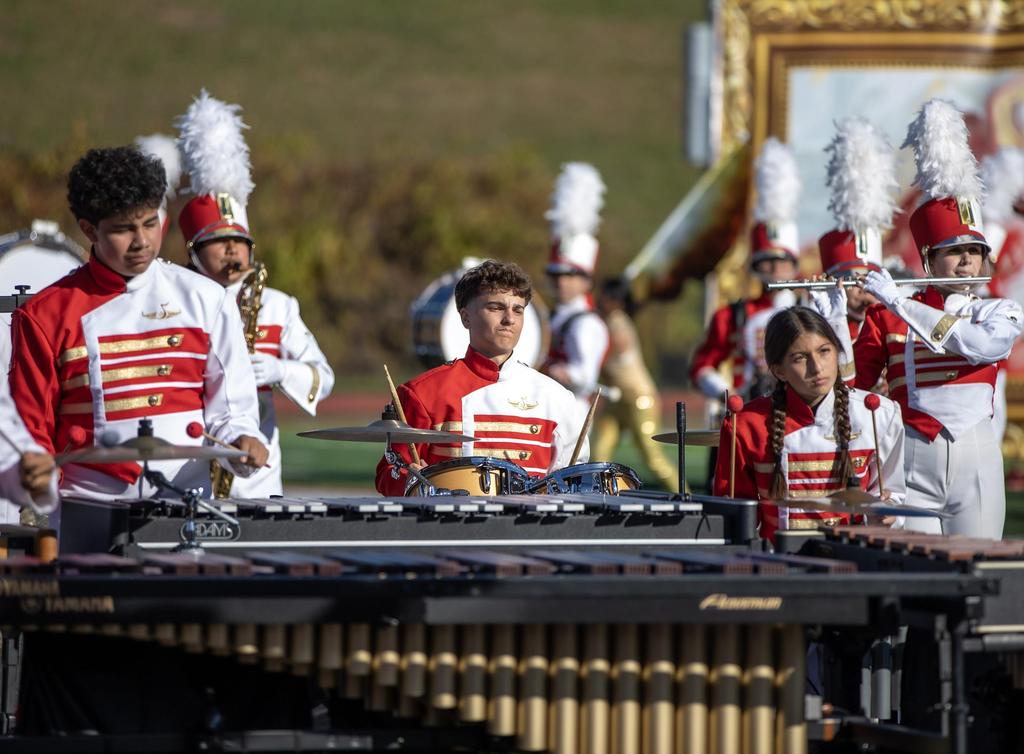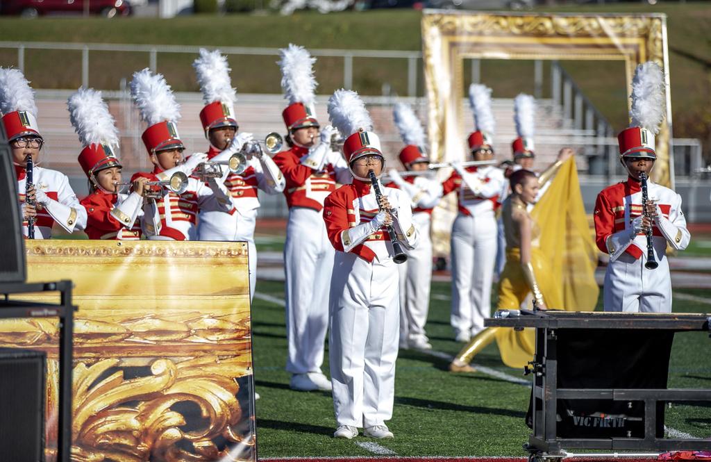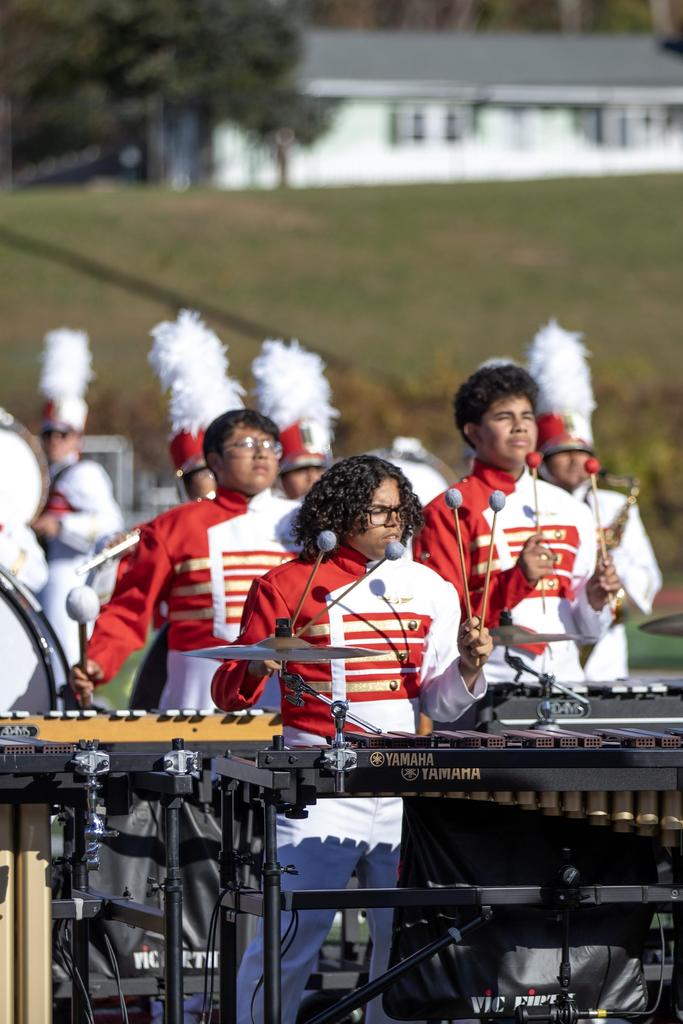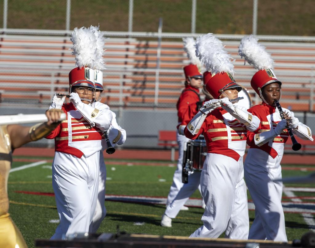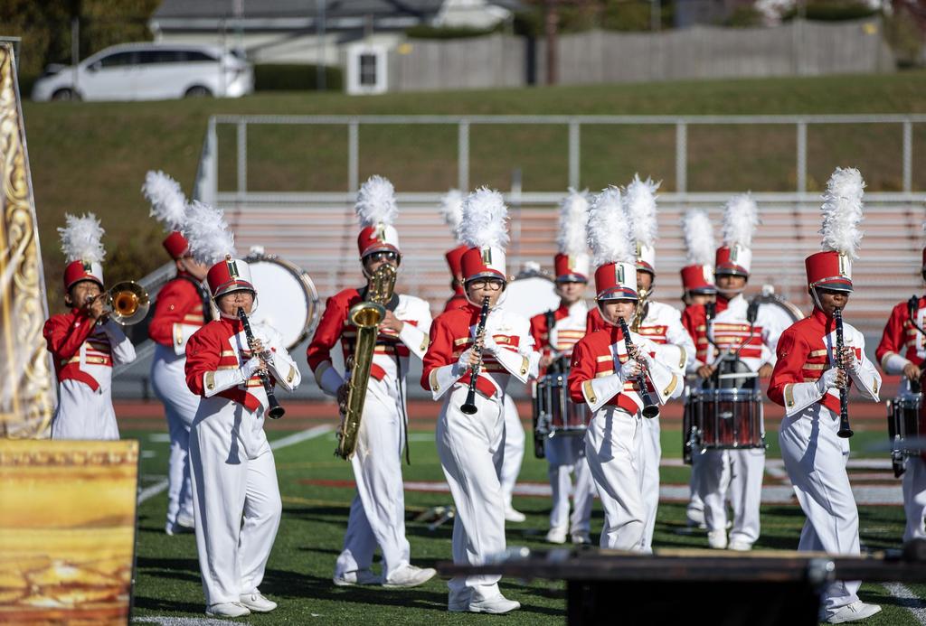 The Everett High School Crimson Tide Marching Band finished second in its division in a USBand Competition held on October 18, 2025, at Burlington High School. Photos courtesy of Sandra Cristobal.