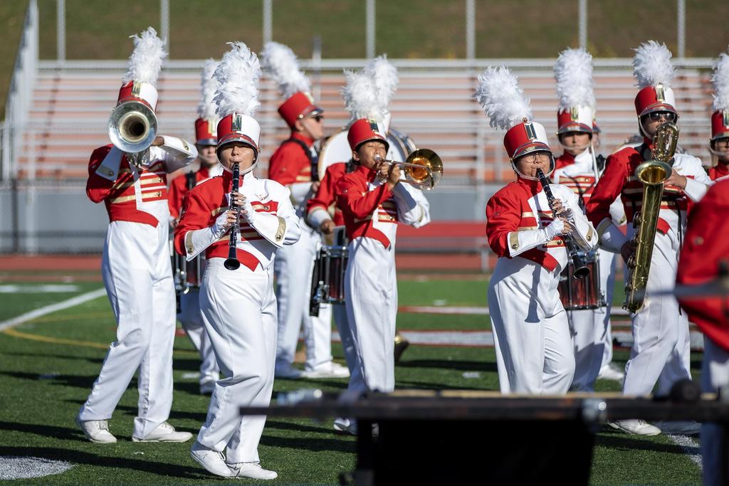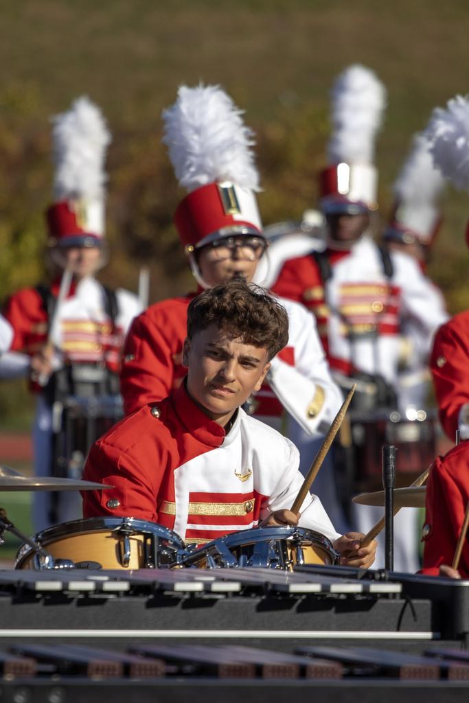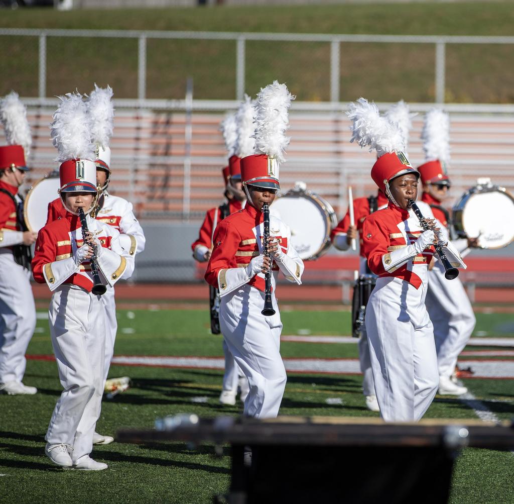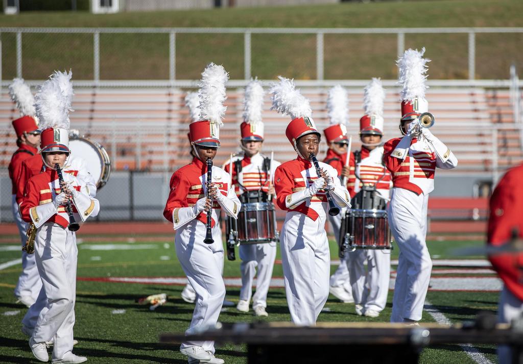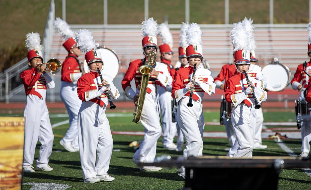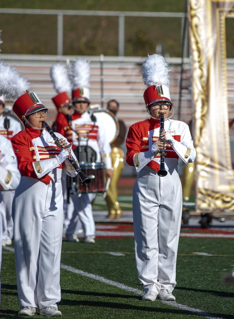 The Everett High School Crimson Tide Marching Band finished second in its division in a USBand Competition held on October 18, 2025, at Burlington High School. Photos courtesy of Sandra Cristobal.