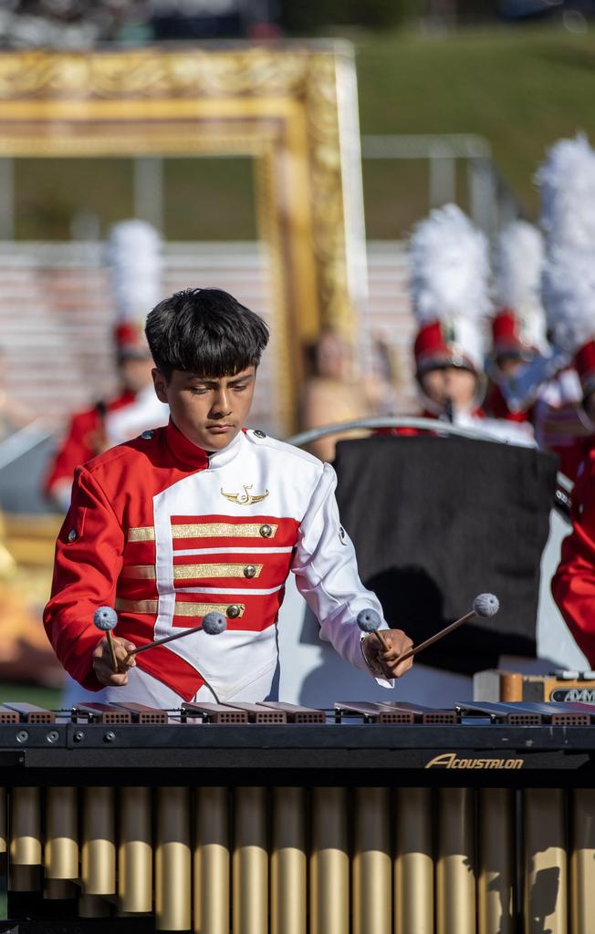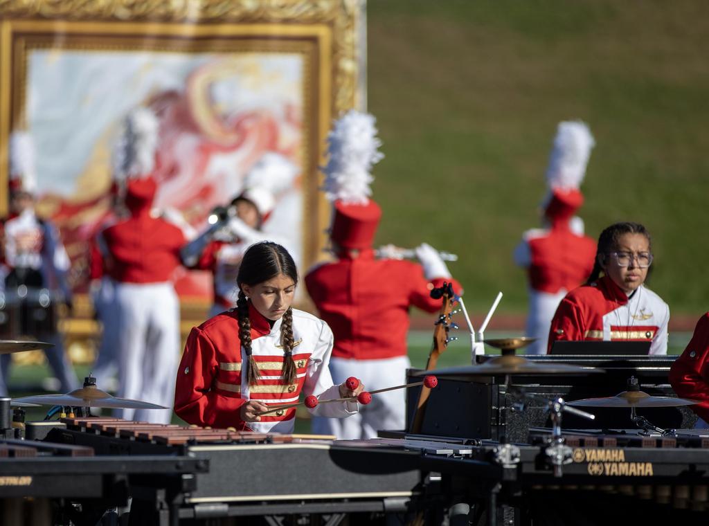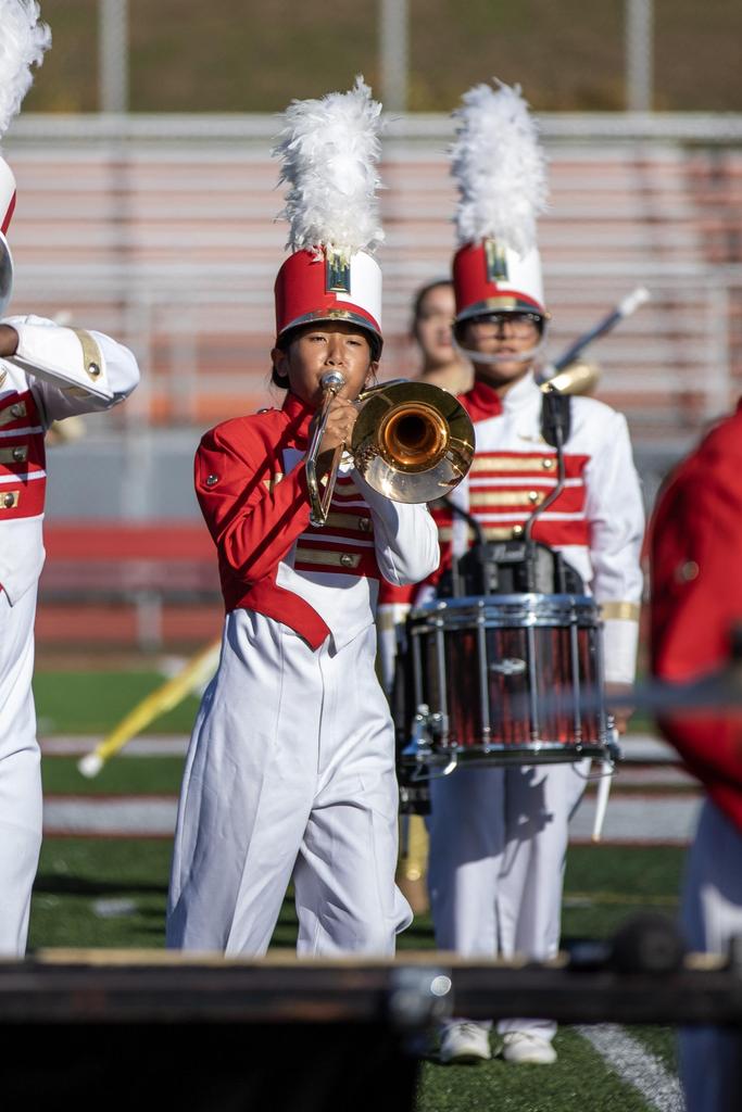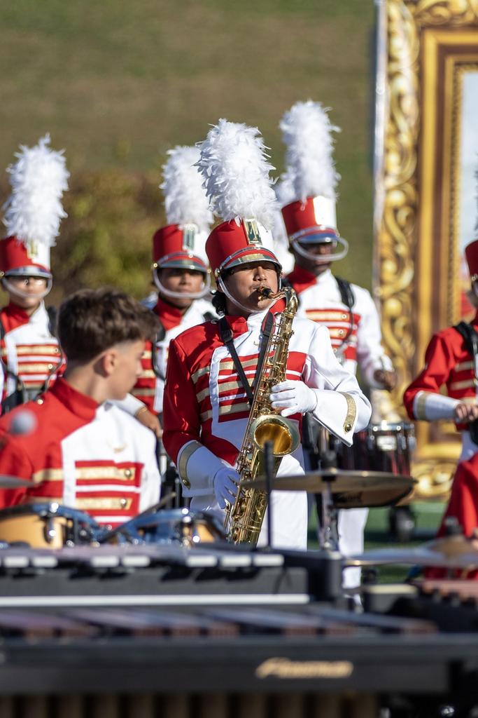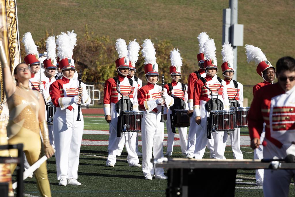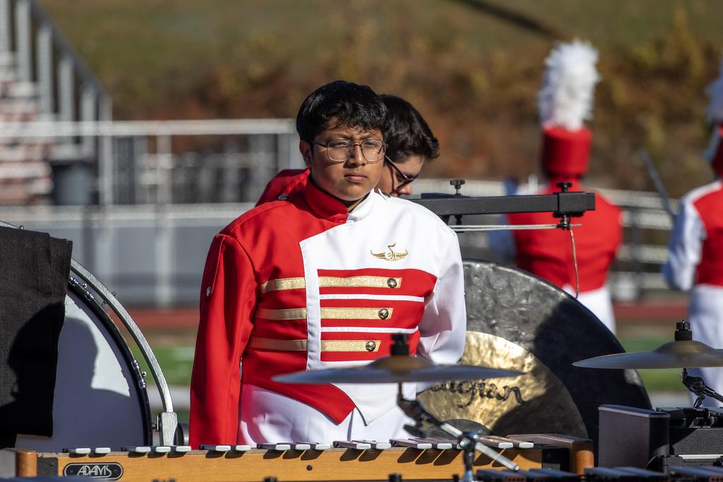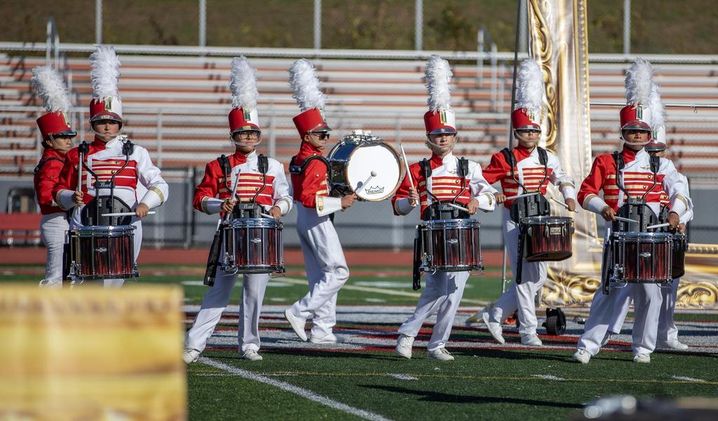 The Everett High School Crimson Tide Marching Band finished second in its division in a USBand Competition held on October 18, 2025, at Burlington High School. Photos courtesy of Sandra Cristobal.