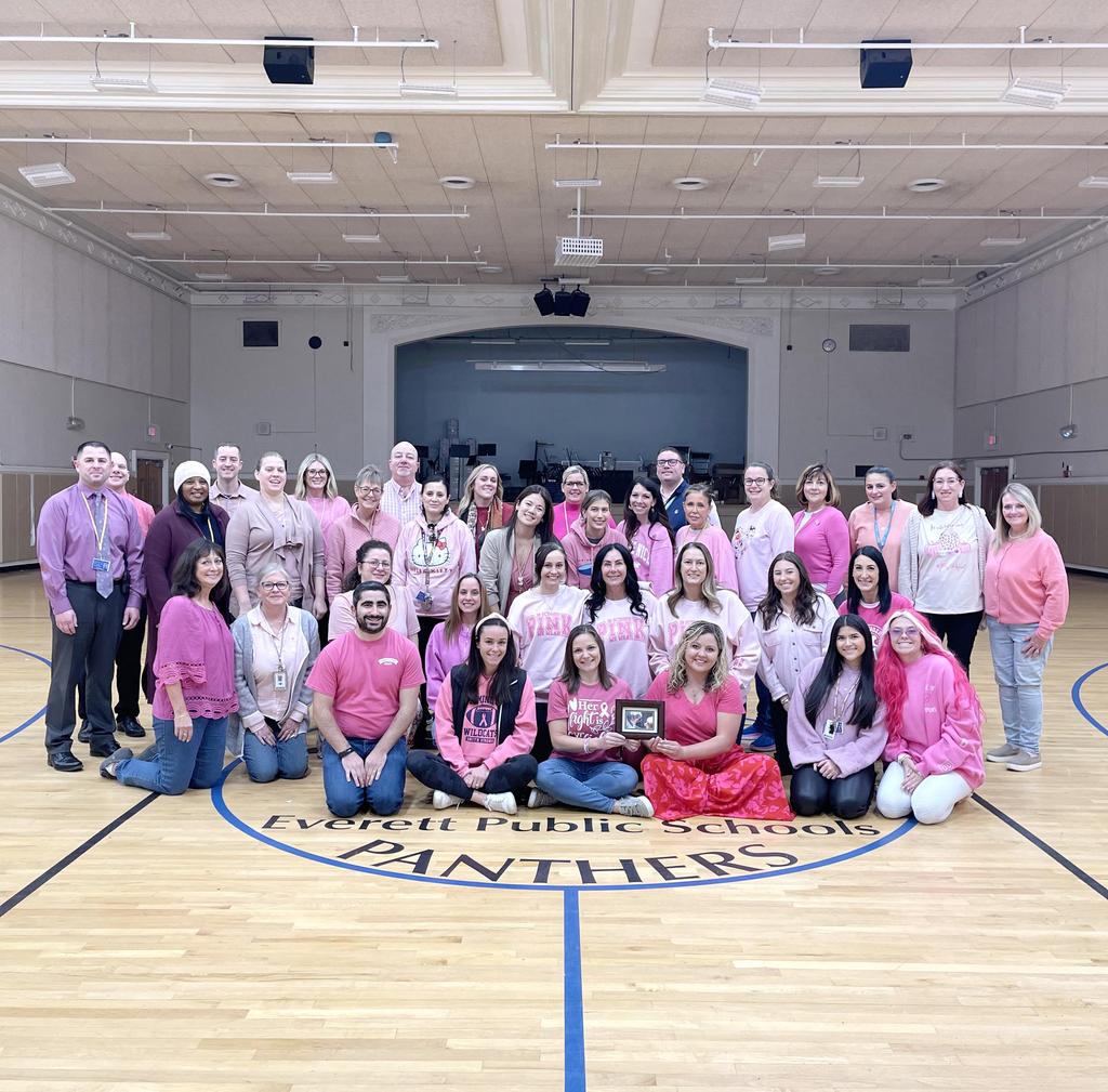 Everett Public Schools (EPS) teachers and staff participated in a Pink Day on Wednesday, October 29, 2025, to support breast cancer awareness. The event was planned by Parlin School teachers Madison Murphy and Carol DeMagistris in memory of Carol Carbone, a beloved volunteer at the Keverian and Parlin schools.