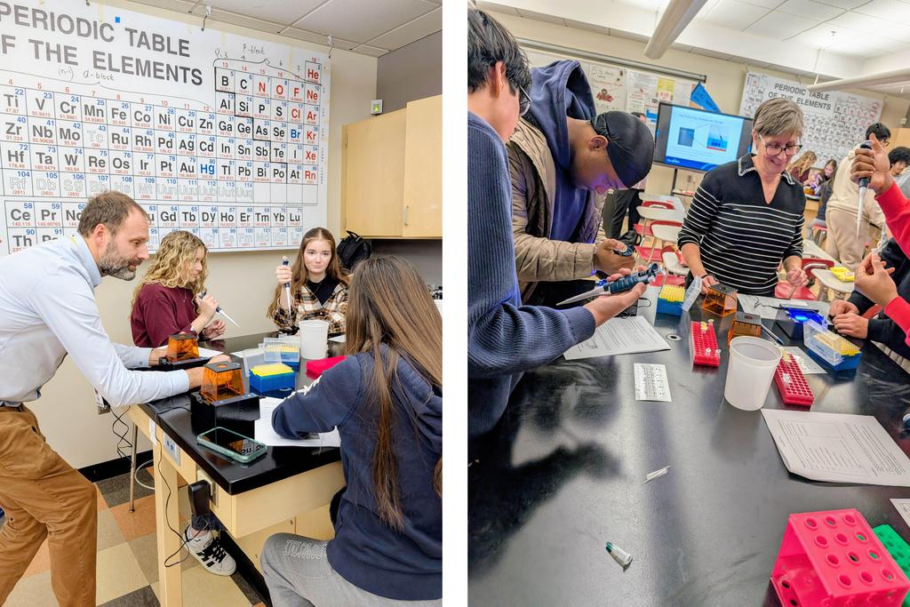 On Tuesday, November 18, 2025, Everett High students immersed themselves in the use of gel electrophoresis, a technique used to separate, analyze, and purify DNA. Thanks to Dr. Sandra Luikenhuis for leading the engaging lesson and sharing her expertise with students and faculty.