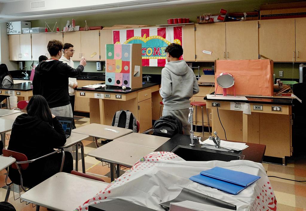 Everett High School (EHS) students in the Project Lead the Way Introduction to Engineering Design Class held Carnival Game Day on November 20, 2025, giving them the chance to showcase their work to faculty and staff. The project, led by teacher Michelina Tumblin, asks students to use the engineering design process to collaboratively design a carnival game. They brainstormed ideas, used concept sketching, tested their games, and improved the design through iteration. In addition, the students used statistical techniques to evaluate and inform their design decisions.